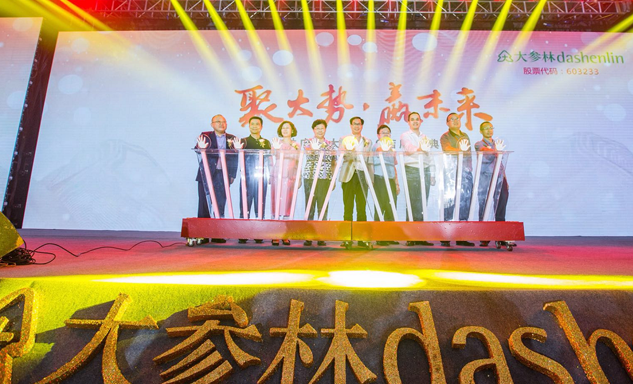 pp极速糖果1000药业集团董事长刘景萍女士与大参林医药集团董事长柯云峰先生、中国医药商业协会执行会长付明仲女士等嘉宾共同开启了“聚大势•赢未来"大参林工商合作峰会的大幕。